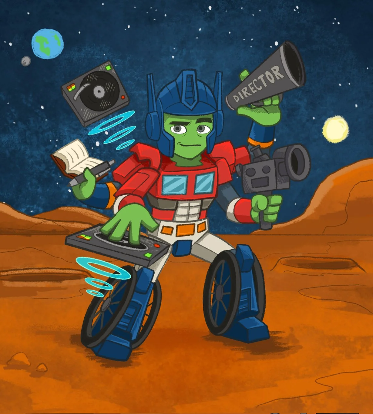 He’s got OPTIMAL video skills and PRIMAL storytelling chops. (Get it? “Optimal… Primal…” Optimus Prime?!? Anyhoo…) Matt will break down any idea into bite-sized production strategies, and then put it all together again into a work of art.